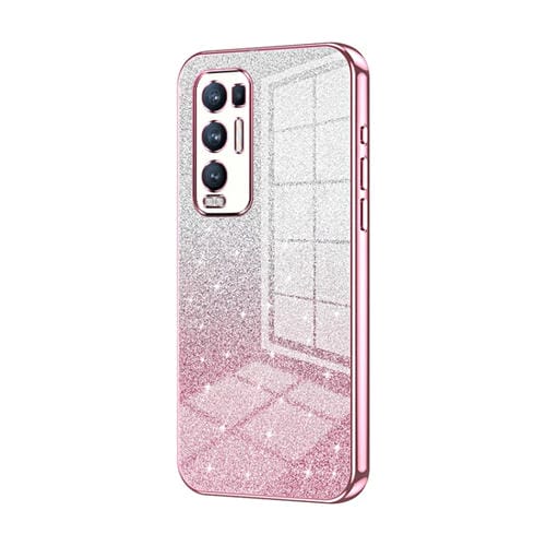 Para Oppo Reno5 Pro + Estuche para Teléfono Galvanizado con Polvo de Brillo Degradado (Rosa)