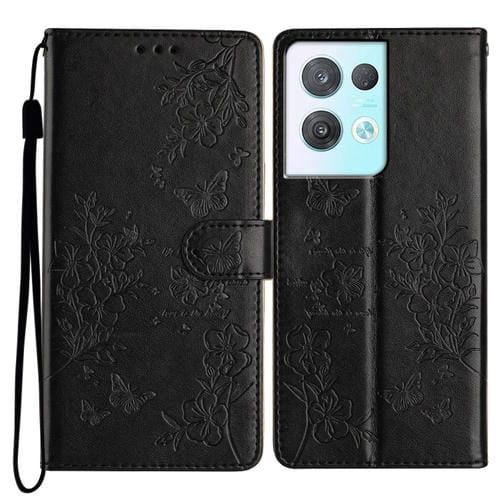 Para Oppo Reno8 Pro 5G Global Butterfly Love Flower Funda de Cuero para Teléfono En Relieve (Negro)