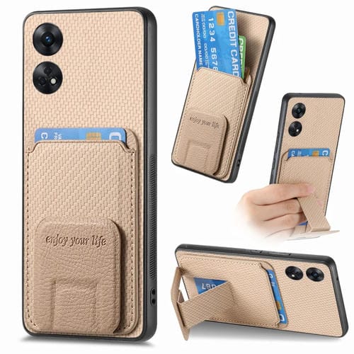 Para Oppo Reno8 T 4G Funda para Teléfono con Soporte Plegable y Bolsa para Tarjetas de Fibra de Carbono (Caqui)