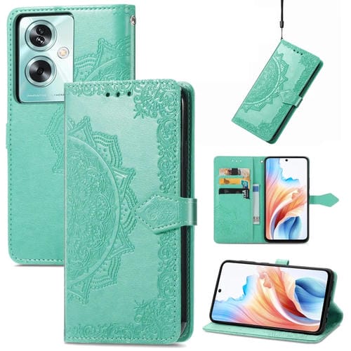 Para Oppoa79 5G / A2 5G Funda de Teléfono de Cuero con Relieve de Flor de Mandala (Verde)