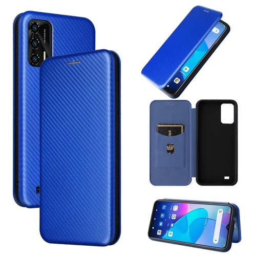 Funda de Cuero para Oukitel C31 con Textura de Fibra de Carbono (Azul)