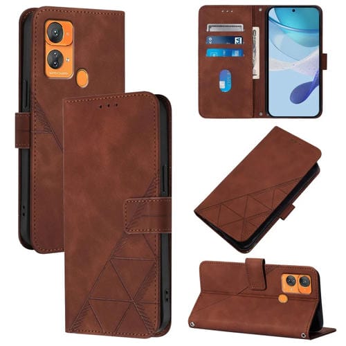 Funda para Oukitel C33 Crossbody de Cuero con Tapa en Relieve 3D (Marrón)