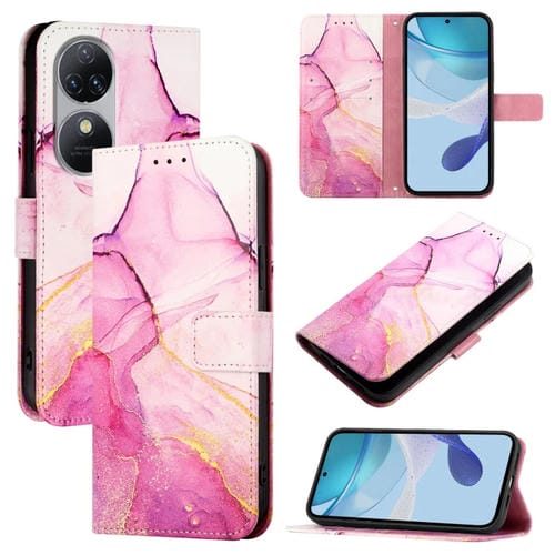 Funda para Oukitel C38 Pt003 de Cuero con Tapa y Patrón de Mármol (Rosa, Morado y Dorado)