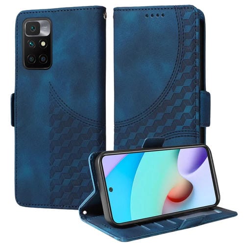 Para Redmi 10 2022 Funda para Teléfono de Cuero Estrellado con Rombos En Relieve (Azul)