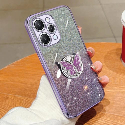 Para Redmi 12 Funda para Teléfono de TPU con Soporte de Mariposa con Brillo Degradado Plateado (Púrpura)