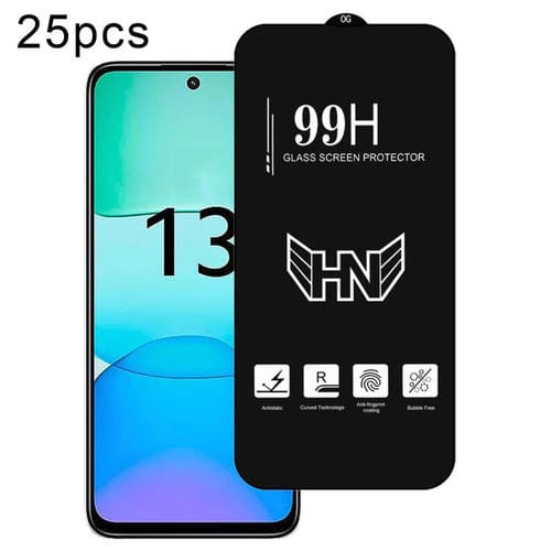 Para Redmi 13 4G 25 Piezas de Película de Vidrio Templado de Pantalla Completa de Arco Grande de Aluminio Alto