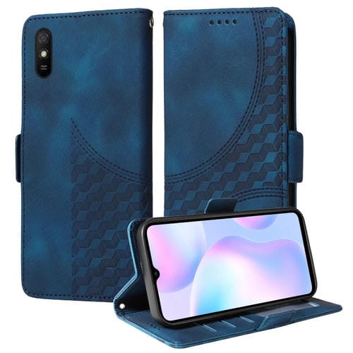 Para Redmi 9A / 9I Funda para Teléfono de Cuero Estrellado con Rombos En Relieve (Azul)
