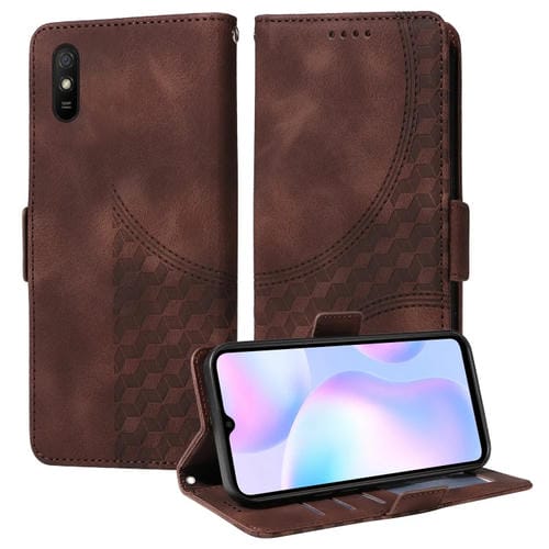 Para Redmi 9A / 9I Funda para Teléfono de Cuero Estrellado con Rombos En Relieve (Marrón)