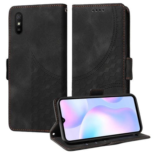 Para Redmi 9A / 9I Funda para Teléfono de Cuero Estrellado con Rombos En Relieve (Negro)