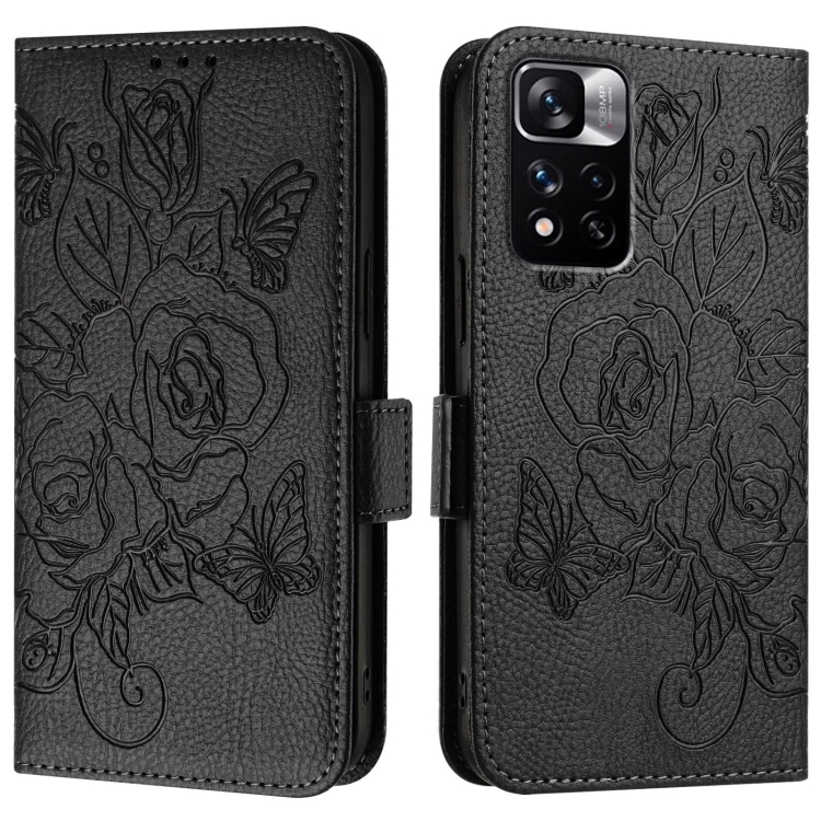 Para Redmi Note 11 Pro + 5G / 12 Pro 4G Funda de Teléfono de Cuero Antirrobo Rfid con Relieve Global (Negro)