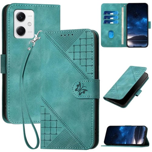 Para Redmi Note 12 5G Yx0080 Funda de Cuero con Tapa y Patrón En Relieve de Mariposa En Cuadrícula con Cordón (Azul Claro)