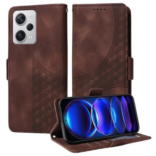 Para Redmi Note 12 Pro Funda de Teléfono de Cuero Estrellado con Rombo En Relieve Global (Marrón)