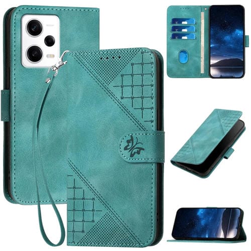 Para Redmi Note 12 Pro Yx0080 Funda de Cuero con Tapa con Patrón En Relieve de Mariposa y Cuadrícula con Cordón (Azul Claro)