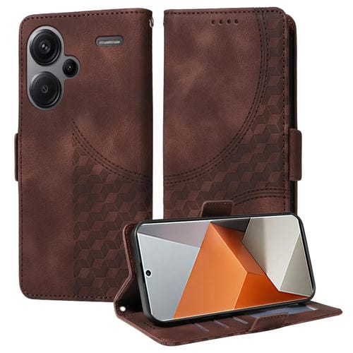 Para Redmi Note 13 Pro + 5G Funda para Teléfono de Cuero Estrellado con Rombos En Relieve (Marrón)
