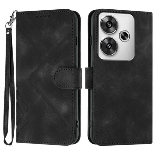 Para Redmi Turbo 3 / Xiaomi Poco F6 Funda de Cuero para Teléfono con Patrón de Líneas y Sensación de Piel (Negro)