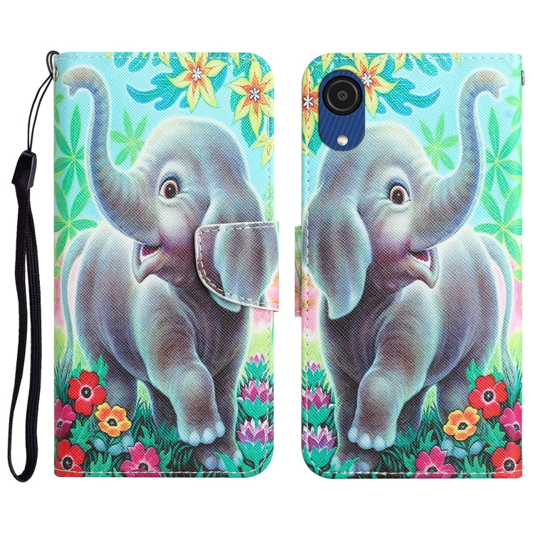 Para Samsung Galaxy A03 Core Dibujo coloreado Funda de cuero para teléfono (Elefante)