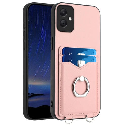 Estuche para Teléfono Samsung Galaxy A05 4G Global R20 con Soporte para Tarjeta y Anillo (Rosa)