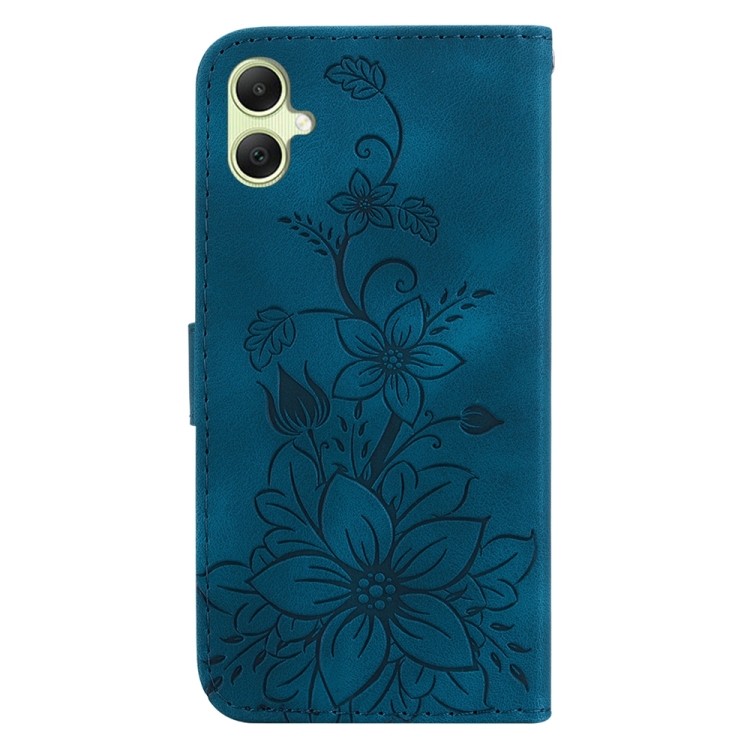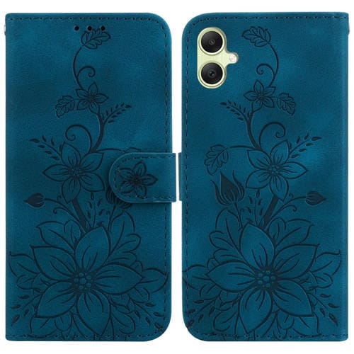 Funda de Cuero Samsung Galaxy A05 con Relieve Lily (Azul Oscuro)