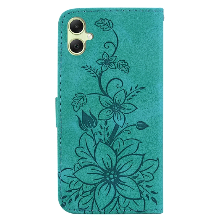 Funda de Cuero para Samsung Galaxy A05 con Relieve Lily (Verde)