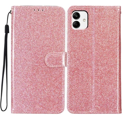 Funda para Samsung Galaxy A05 Cuero con Tapa y Purpurina en Polvo (Oro Rosa)