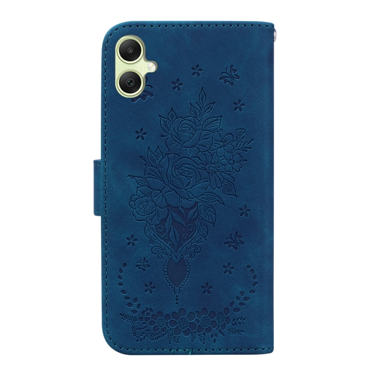 Funda para Teléfono Samsung Galaxy A05 Cuero con Relieve Mariposa y Rosa (Azul)