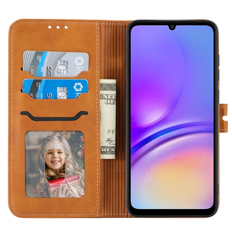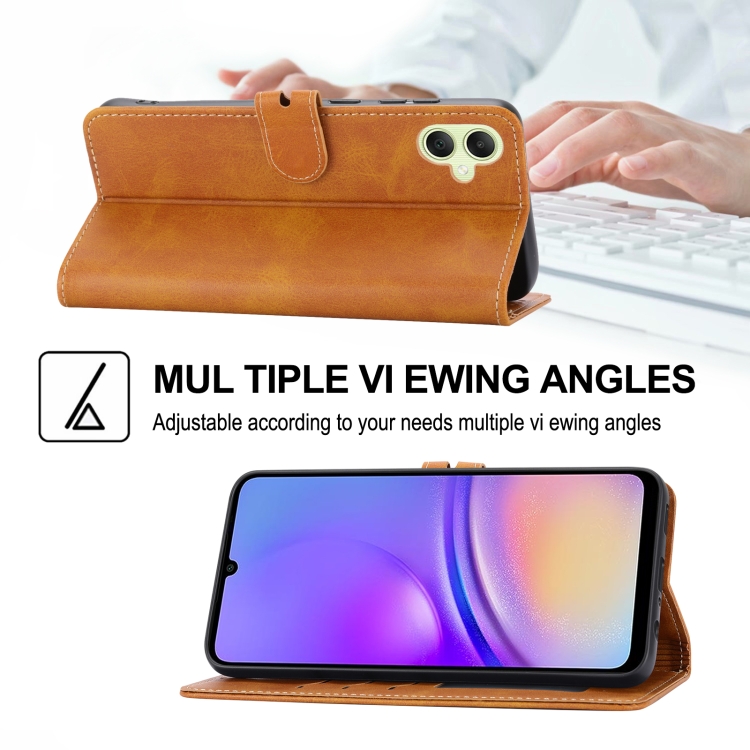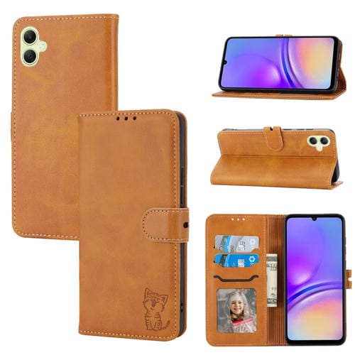 Funda para Teléfono Samsung Galaxy A05 Cuero Tapa Patrón Gato Feliz (Amarillo)