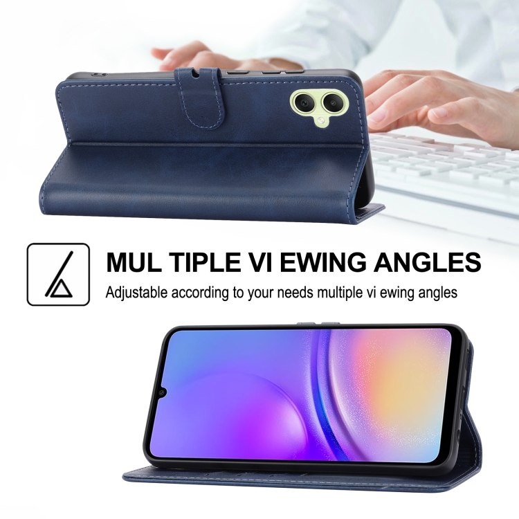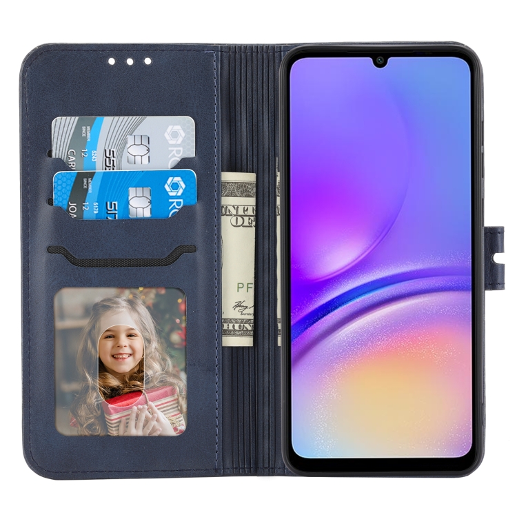 Funda para Teléfono Samsung Galaxy A05 Cuero con Tapa Patrón Gato Feliz (Azul)