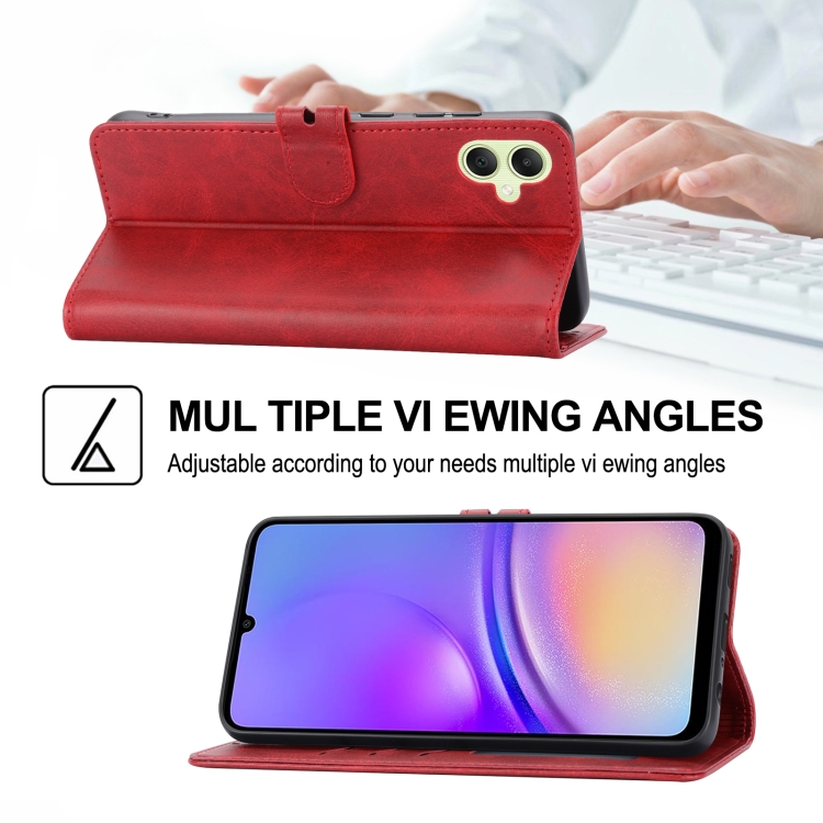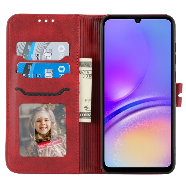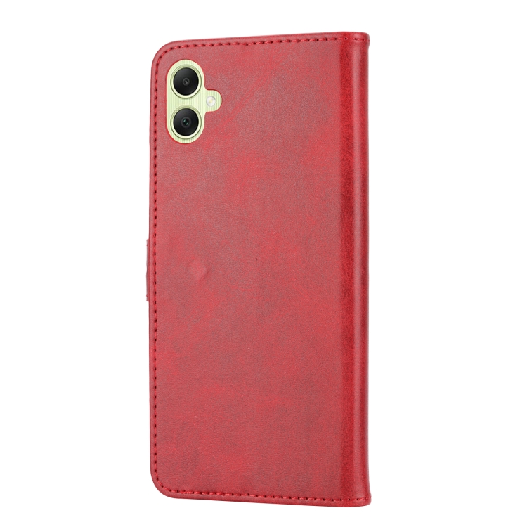 Funda para Teléfono Samsung Galaxy A05 Cuero con Tapa y Patrón de Gato Feliz en Relieve (Rojo)