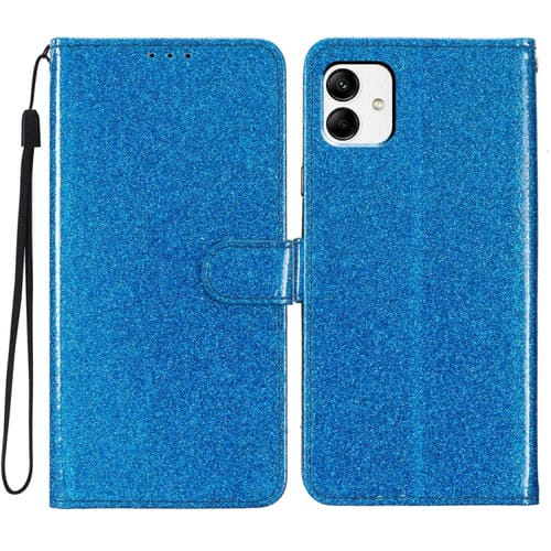 Funda de Cuero Glitter Powder para Samsung Galaxy A05 Flip (Azul)