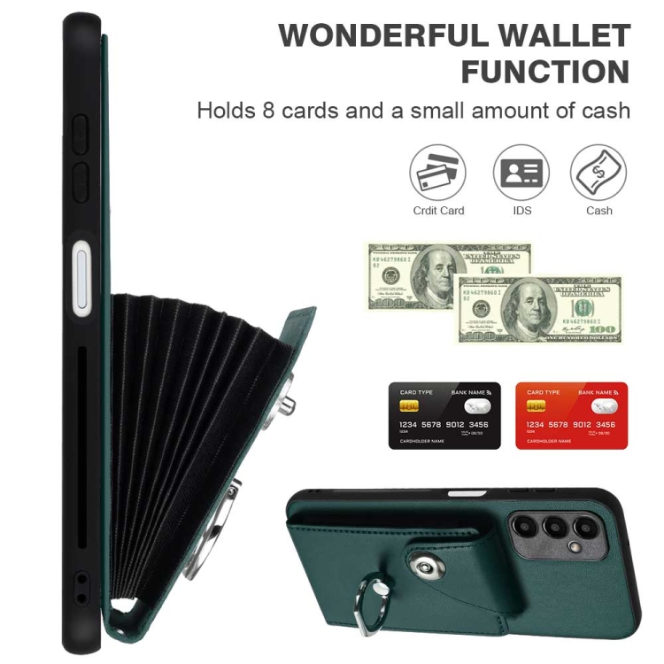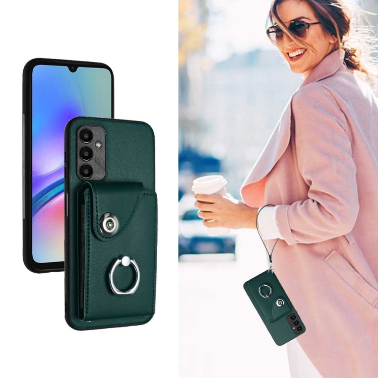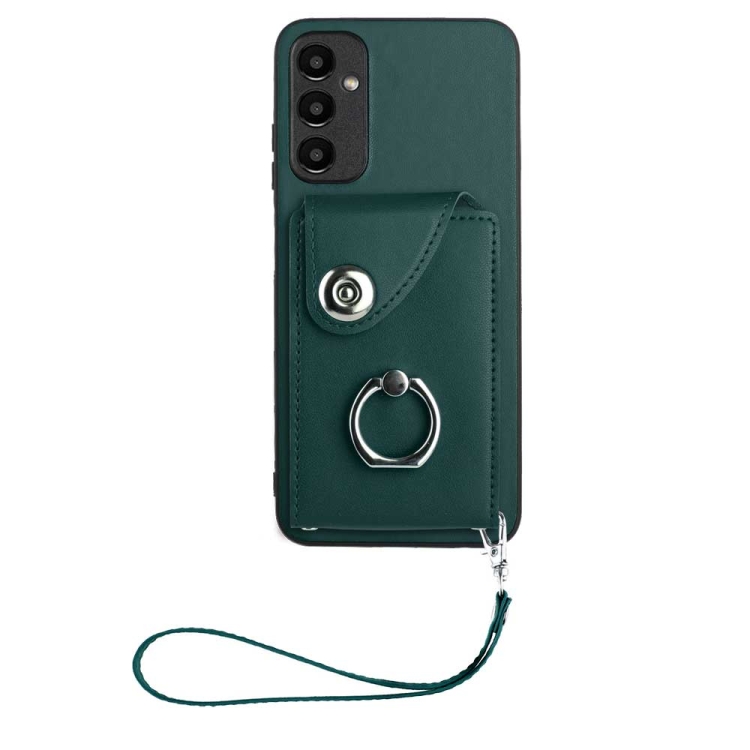 Funda para teléfono Samsung Galaxy A05S 4G Organ Card Bag Ring Holder de PU con Cordón (Verde)