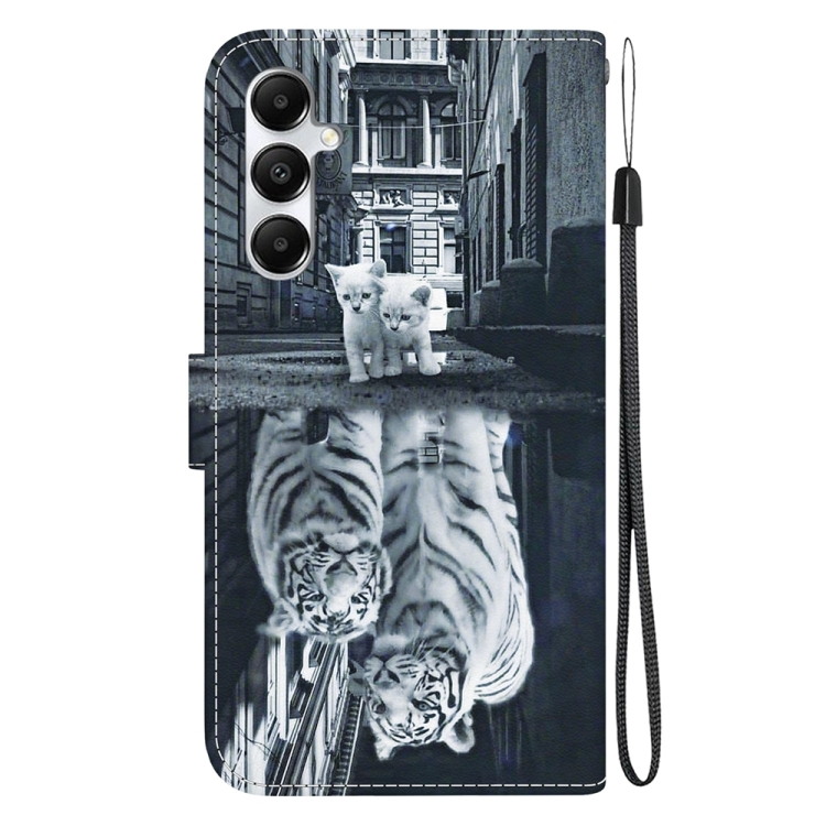 Funda de Cuero Samsung Galaxy A05S Dibujo Coloreado Textura de Cristal (Reflejo de Tigre Gato)