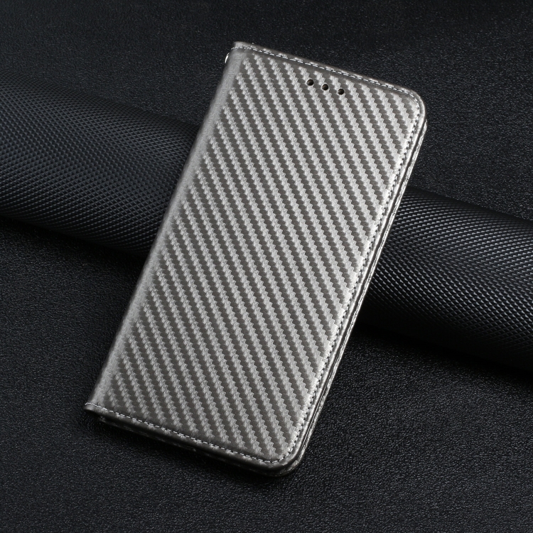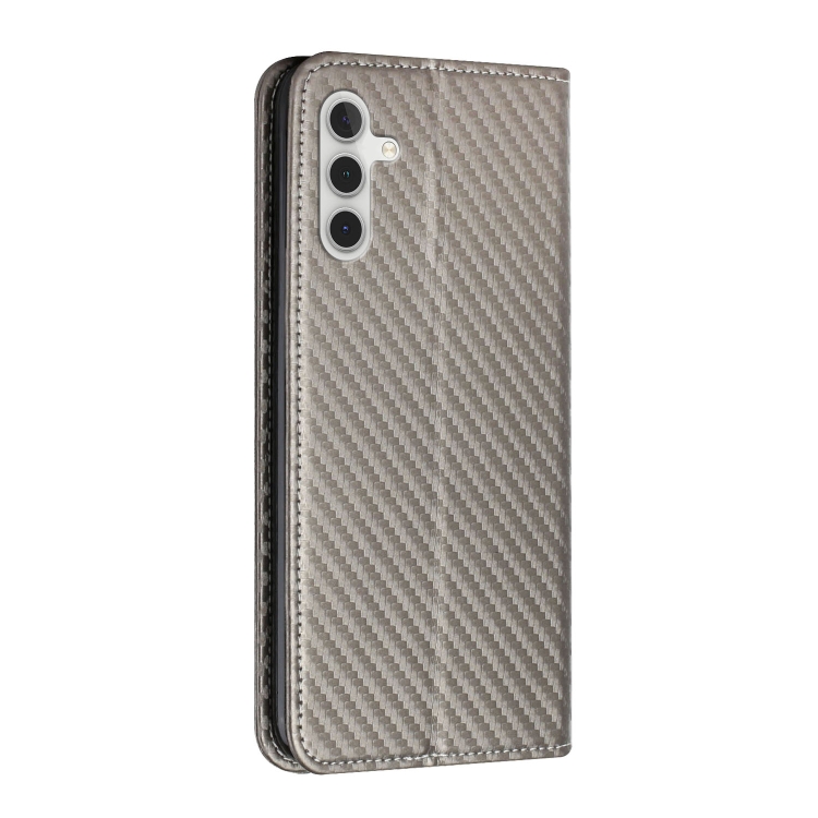 Funda para Samsung Galaxy A05S Cuero con Soporte y Textura de Fibra de Carbono (Gris)