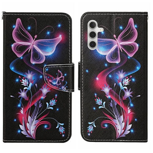 Funda de Cuero Samsung Galaxy A05S con Patrón de Dibujo de Colores Mariposa Fluorescente