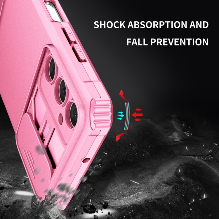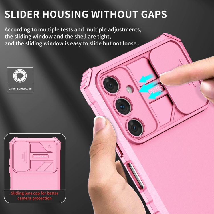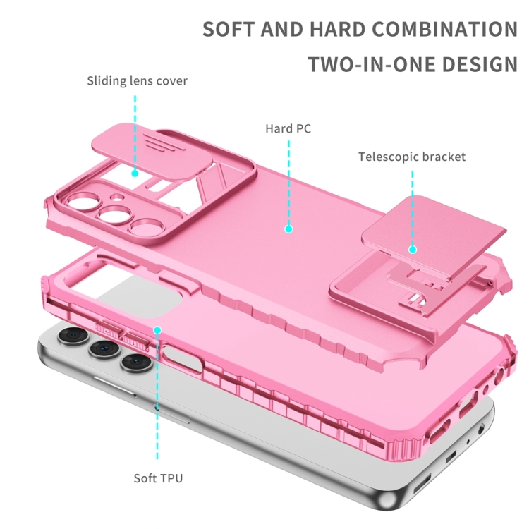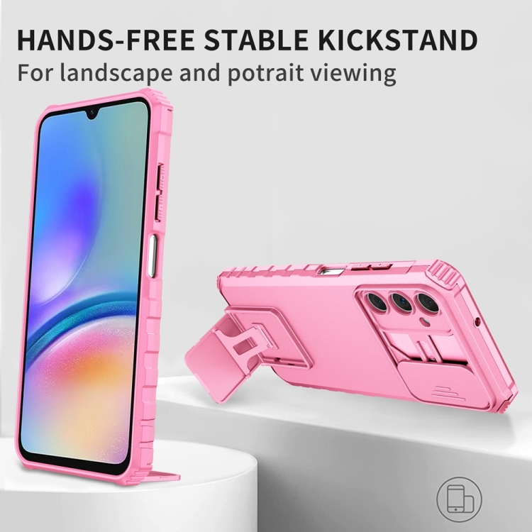 Funda para Teléfono Samsung Galaxy A05S con Soporte Estereoscópico y Pantalla de Leva Deslizante (Rosa)
