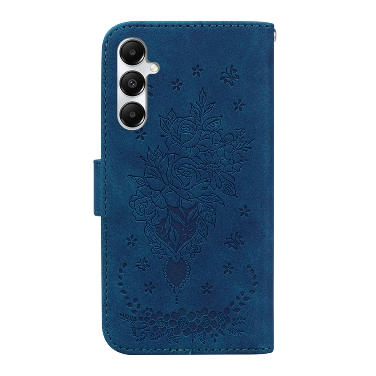 Funda para Teléfono Samsung Galaxy A05S Cuero con Relieve de Mariposa y Rosa (Azul)