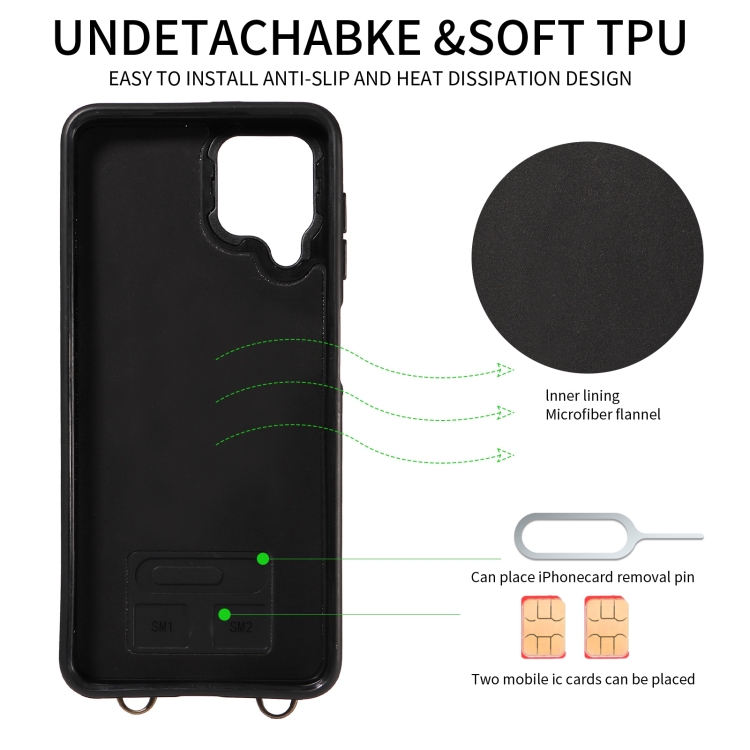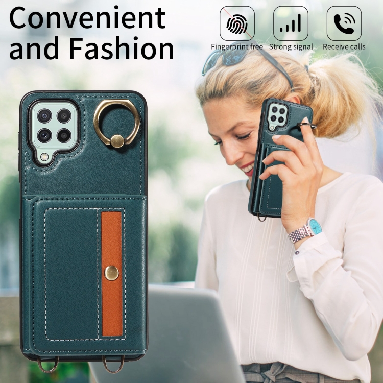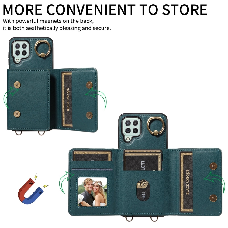 Funda para Teléfono Samsung Galaxy A12 Crossbody Wallet Bag Ring Holder de Cuero (Verde)