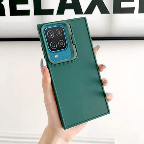 Estuche para Teléfono Samsung Galaxy A12 con Soporte para Marco de Lente a Prueba de Golpes (Verde)
