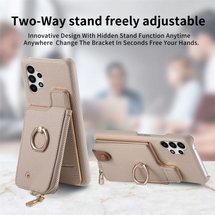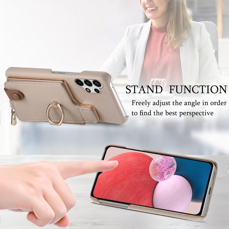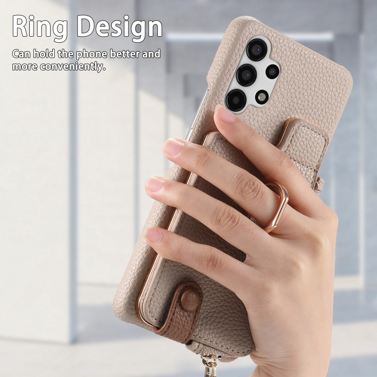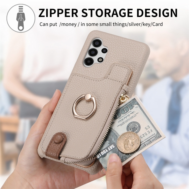 Funda para Samsung Galaxy A13 4G Litchi Leather Oil Edge Ring Zipper Wallet Back (Blanco)