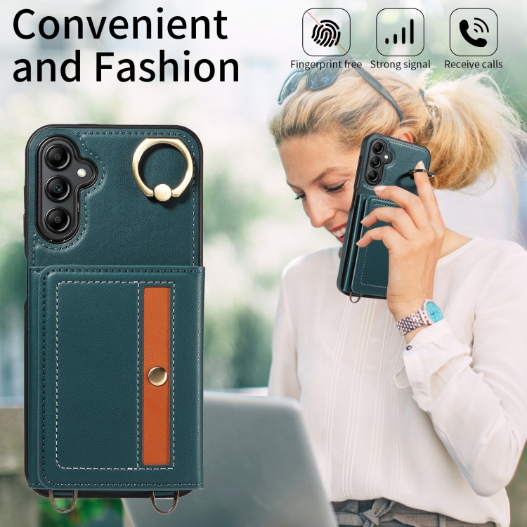 Funda para Samsung Galaxy A14 5G 4G Crossbody Wallet Bag con Ring Holder y Cuero (Verde)