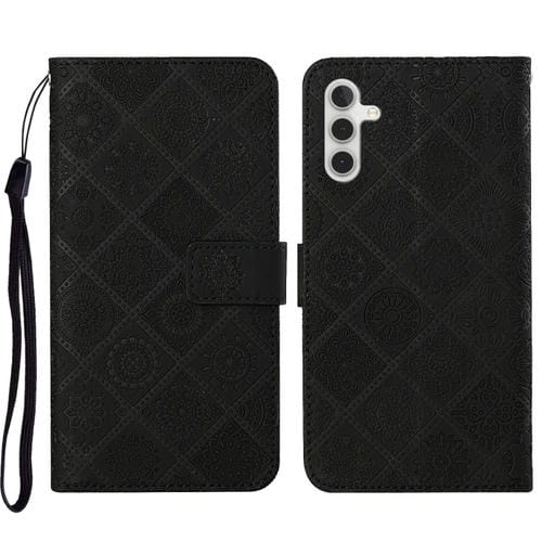 Estuche para Teléfono Samsung Galaxy A14 5G Cuero Patrón En Relieve Estilo Étnico (Negro)