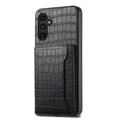 Estuche para Teléfono Samsung Galaxy A14 Diseño Bolsa para Tarjetas Textura de Cocodrilo (Negro)