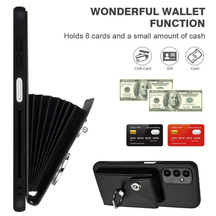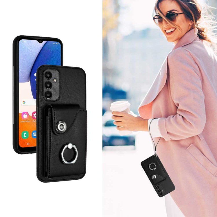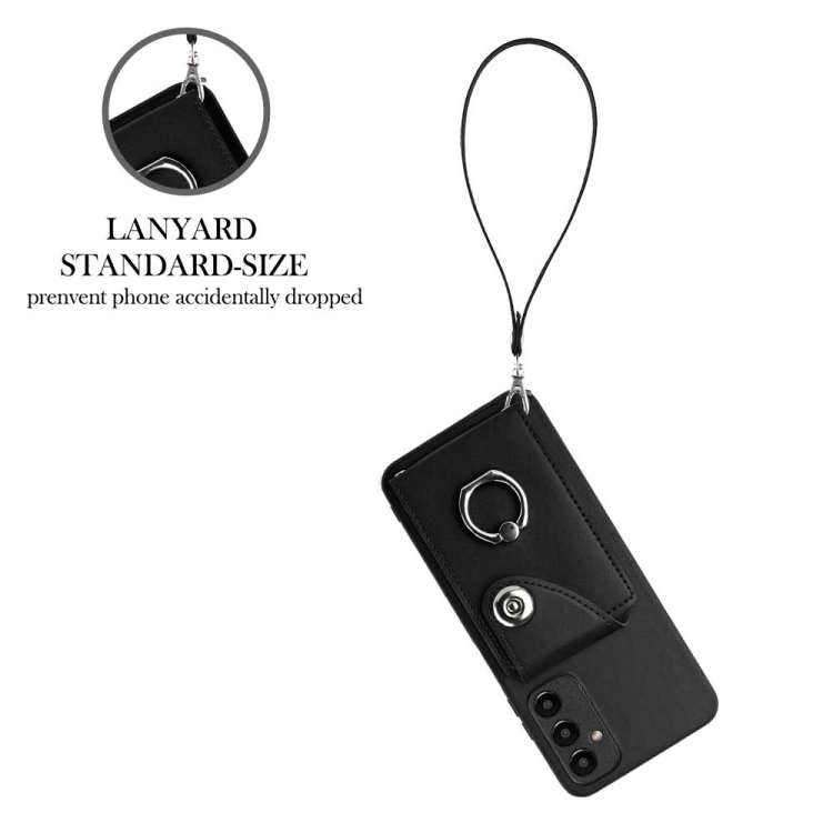 Funda para Teléfono Samsung Galaxy A15 4G Bolsa para Tarjeta Soporte para Anillo con Cordón (Negro)