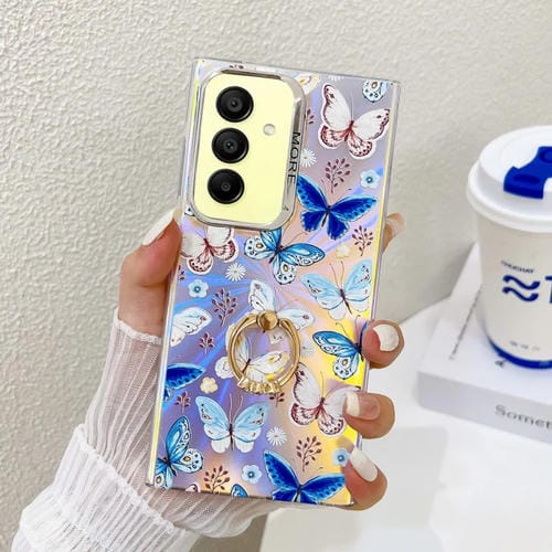 Estuche para teléfono Samsung Galaxy A15 5G con soporte para anillo mariposa láser galvanoplastia (Mariposas Azules)