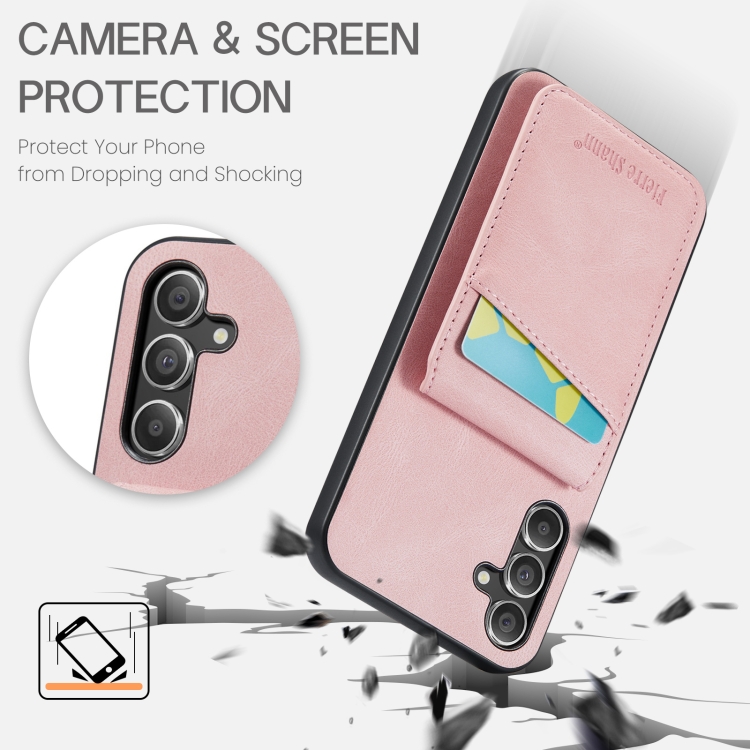 Funda para Teléfono Samsung Galaxy A15 Fierre Shann Crazy Horse Titular de Tarjeta Contraportada (Rosa)