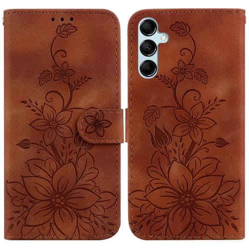 Funda de Cuero Samsung Galaxy A15 con Relieve Lily (Marrón)