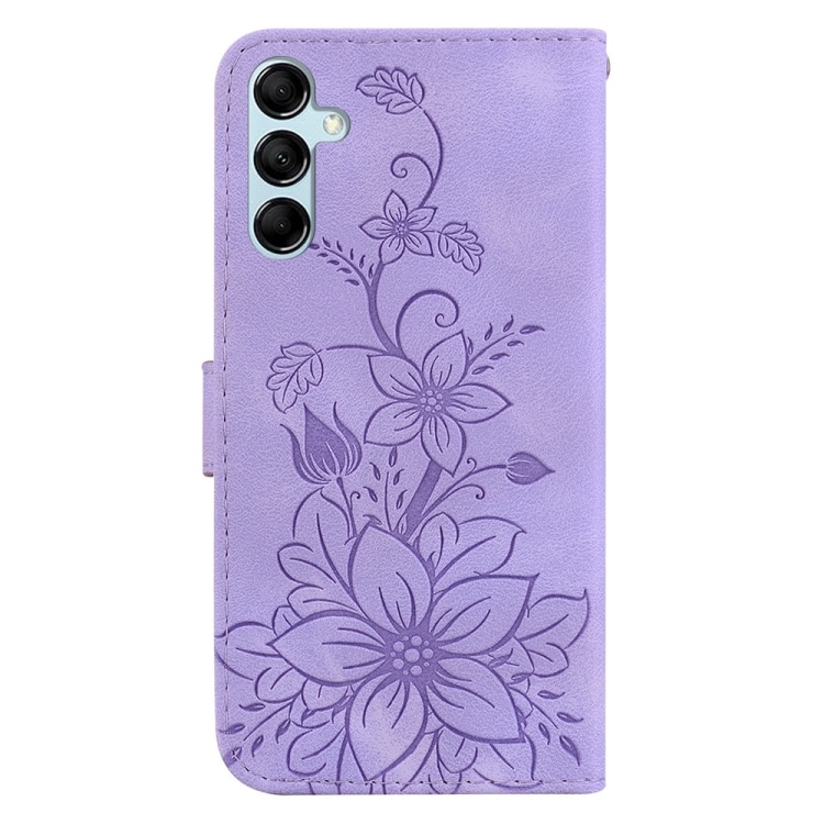 Funda de Cuero Samsung Galaxy A15 con Relieve Lily (Púrpura)