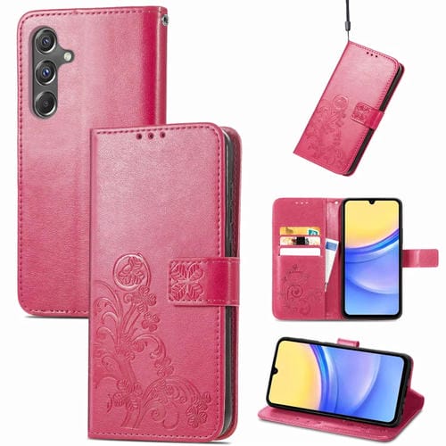 Funda de Cuero Samsung Galaxy A15 con Hebilla en Relieve y Cierre de Cuatro Hojas (Magenta)