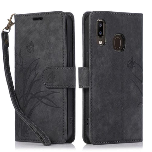 Funda para Teléfono Samsung Galaxy A20E A10E Cuero Relieve Mariposa Orquídea (Negro)