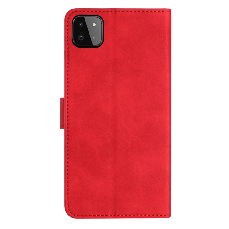 Caja de teléfono de cuero Samsung Galaxy A22 5G Seven Butterflies en relieve (Rojo)