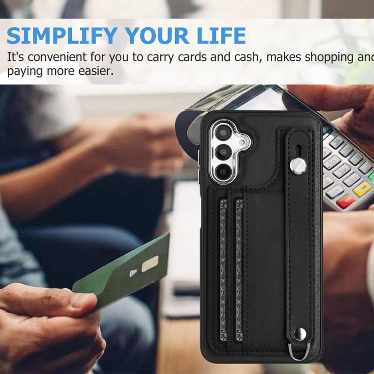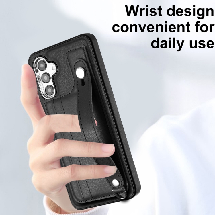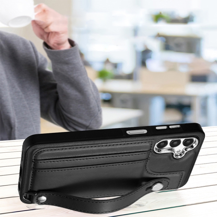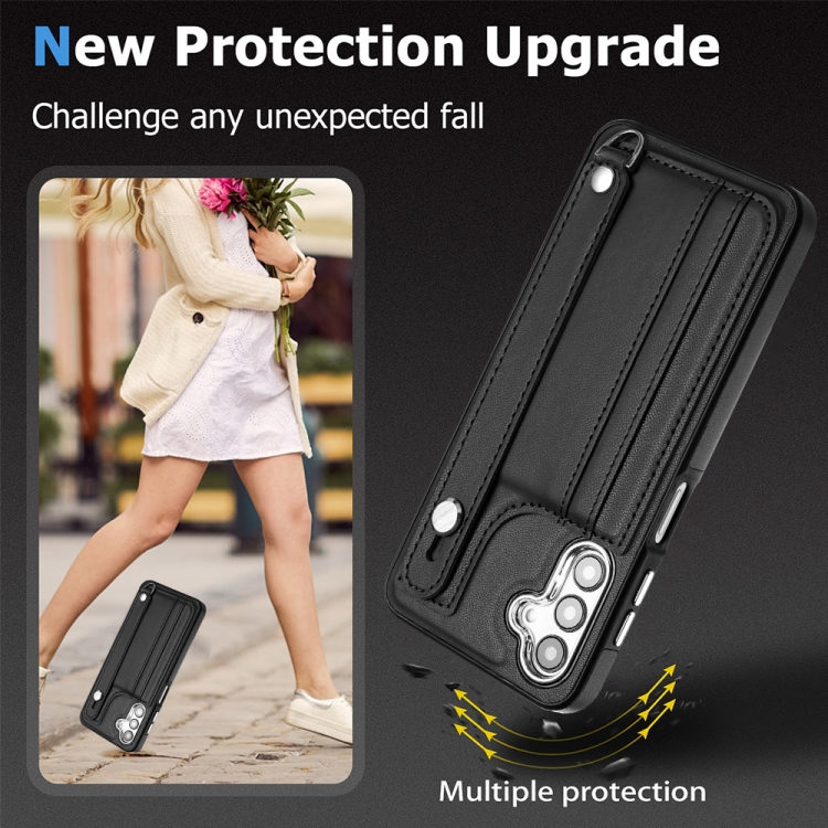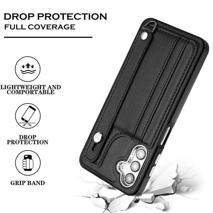 Funda para Samsung Galaxy A24 4G Cuero a Prueba de Golpes con Correa para Muñeca (Negro)